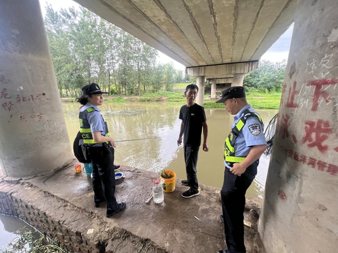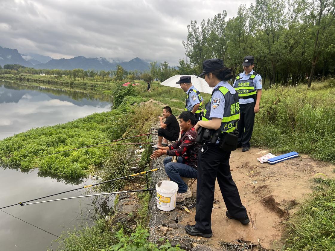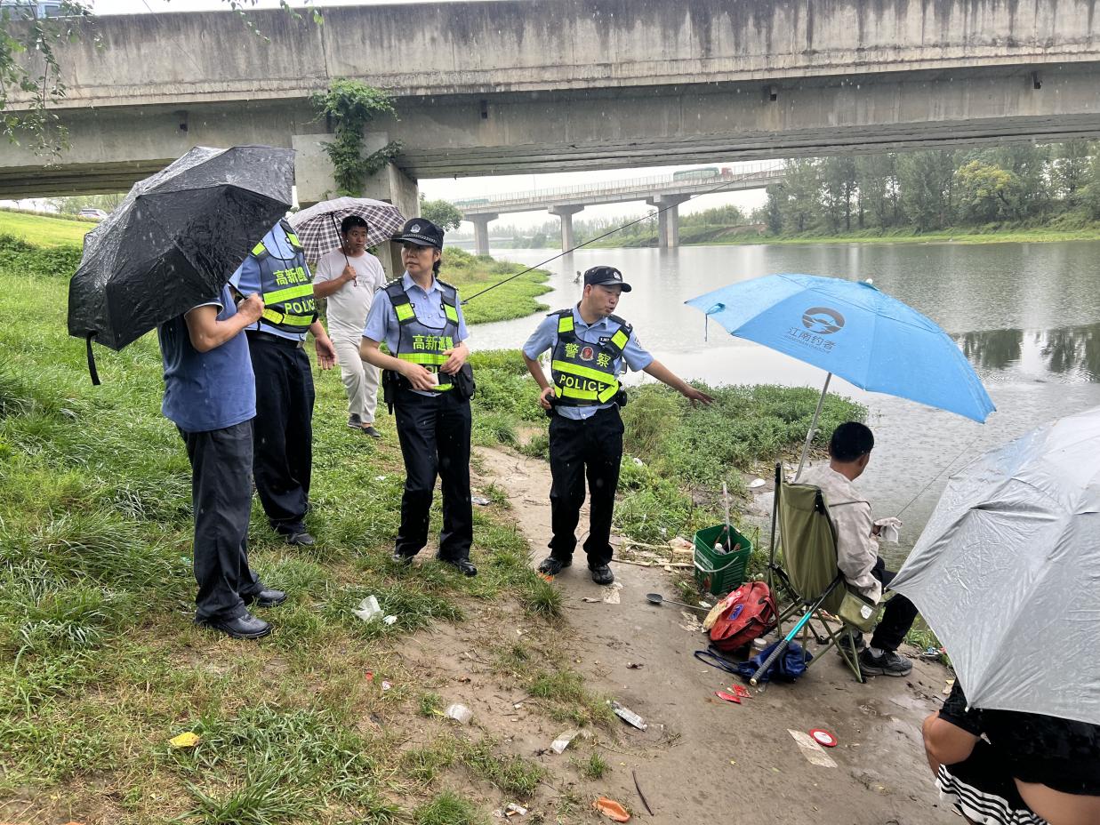 “秦岭脚下河水涨得快,您快收拾东西往高处走!” 在沣河沿岸,值班民警迎雨开展拉网式排查,他们既查看河堤是否因前期雨水出现冲刷痕迹,又要对沿岸垂钓、散步的群众逐人劝导。面对一位执着守在钓位的群众,民警指着远处云层耐心解释:“您看这天气,暴雨随时会来,咱辖区河网支流多,一旦涨水根本无处躲,安全比钓鱼重要!” 在反复劝说下,群众终于起身离开。
