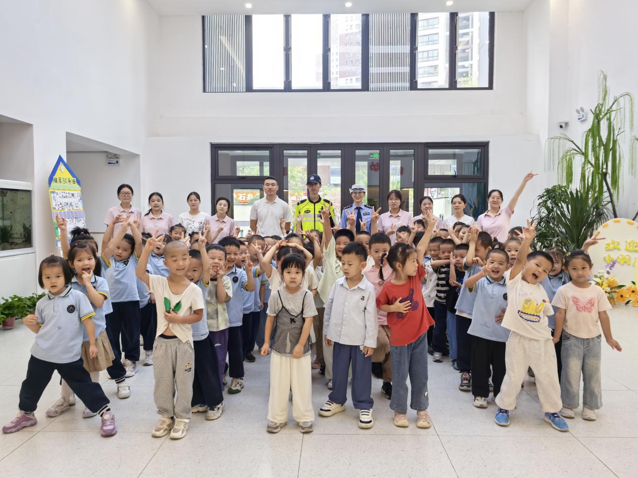 在西安经开第十一幼儿园,一场主题为“安全‘童’行护成长”的交通安全宣讲活动正在开展。民警针对幼儿认知特点,精心设计了交通安全动画视频、互动问答、示范交通指挥手势等环节,帮助孩子们直观识别交通危险行为,学习安全知识。民警还带领孩子们近距离参观警用摩托车与执勤装备,在满足好奇心的同时,在大家的心中播下了交通安全的“种子”。