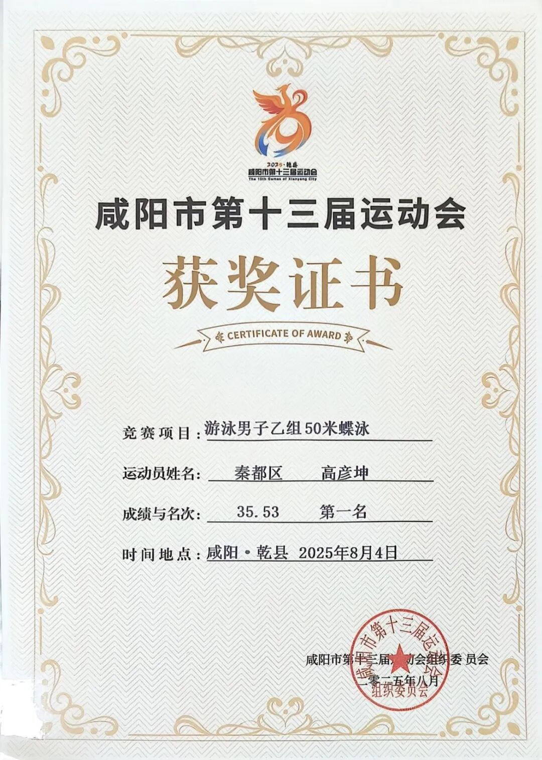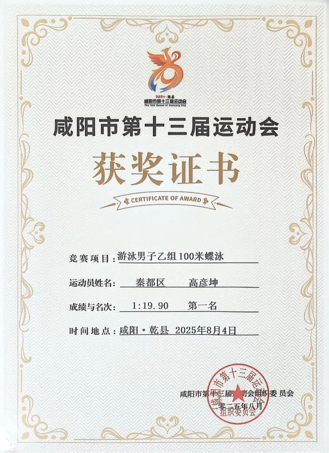 在本次运动会游泳男子乙组赛事中,在个人单项比拼中,高彦坤同学的表现堪称惊艳,在男子乙组50米蝶泳项目中成功摘得第一名;紧接着,在男子乙组100米蝶泳项目中,他再次将第一名收入囊中。此外,在蛙泳项目中,高彦坤同学同样展现出深厚的功底,分别在男子乙组50米蛙泳、100米蛙泳项目中斩获第三名,展现出“一专多能”的全能素养。不仅如此,在团队接力项目中,高彦坤同学在男子乙组4×50米自由泳接力赛中,成功夺得第一名;在男子乙组4×50米混合泳接力赛中,他助力团队再次斩获第一名。