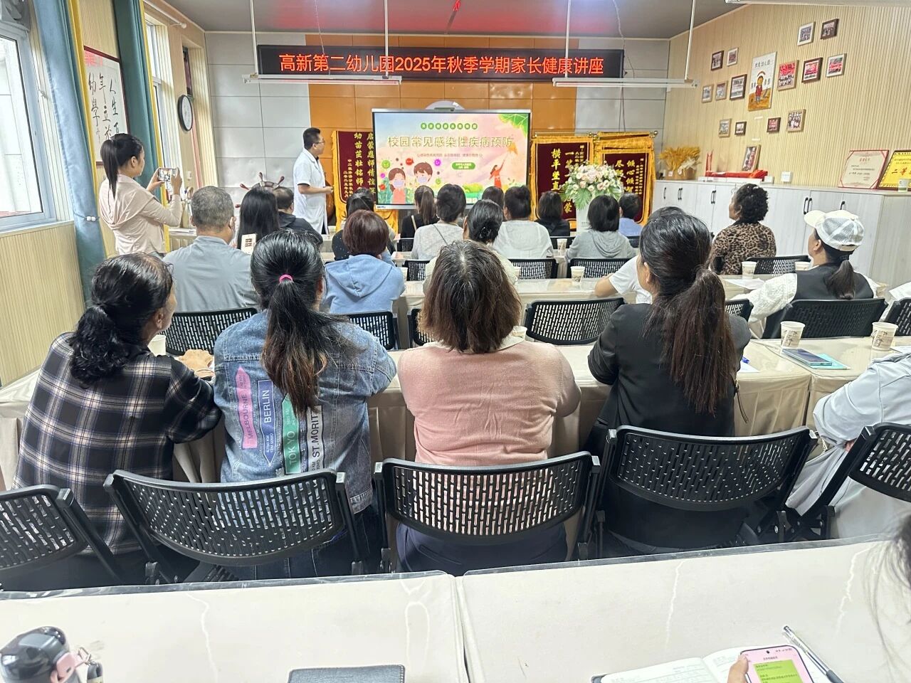 儿科负责人赵刚面向家长群体及同学们讲解了校园常见传染性疾病知识。他详细介绍了流感、手足口病、诺如病毒感染等疾病的典型症状,并重点强调了预防的关键措施:勤洗手、保持环境通风、按时接种疫苗、及早就医并居家休息。讲座结束后,赵医生还与家长进行了互动,耐心解答了大家的疑问。