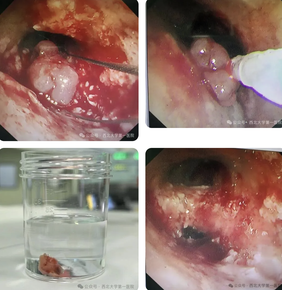 此次手术充分展现了支气管镜介入治疗的“快、准、稳”优势。快速开通气道,有效避免了呼吸衰竭的风险,为患者的生命安全提供了坚实保障;精准取材诊断,避免了开胸活检的巨大创伤,减少了患者的痛苦和并发症的发生;通过综合运用冷冻、电凝等技术,实现了“切除 + 止血 + 病理”一体化治疗,提高了治疗效率和效果。