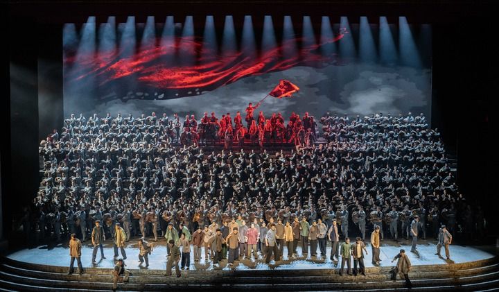 9月3日,纪念中国人民抗日战争暨世界反法西斯战争胜利80周年文艺晚会上,“红星照耀中国”篇章再现历史的一幕: