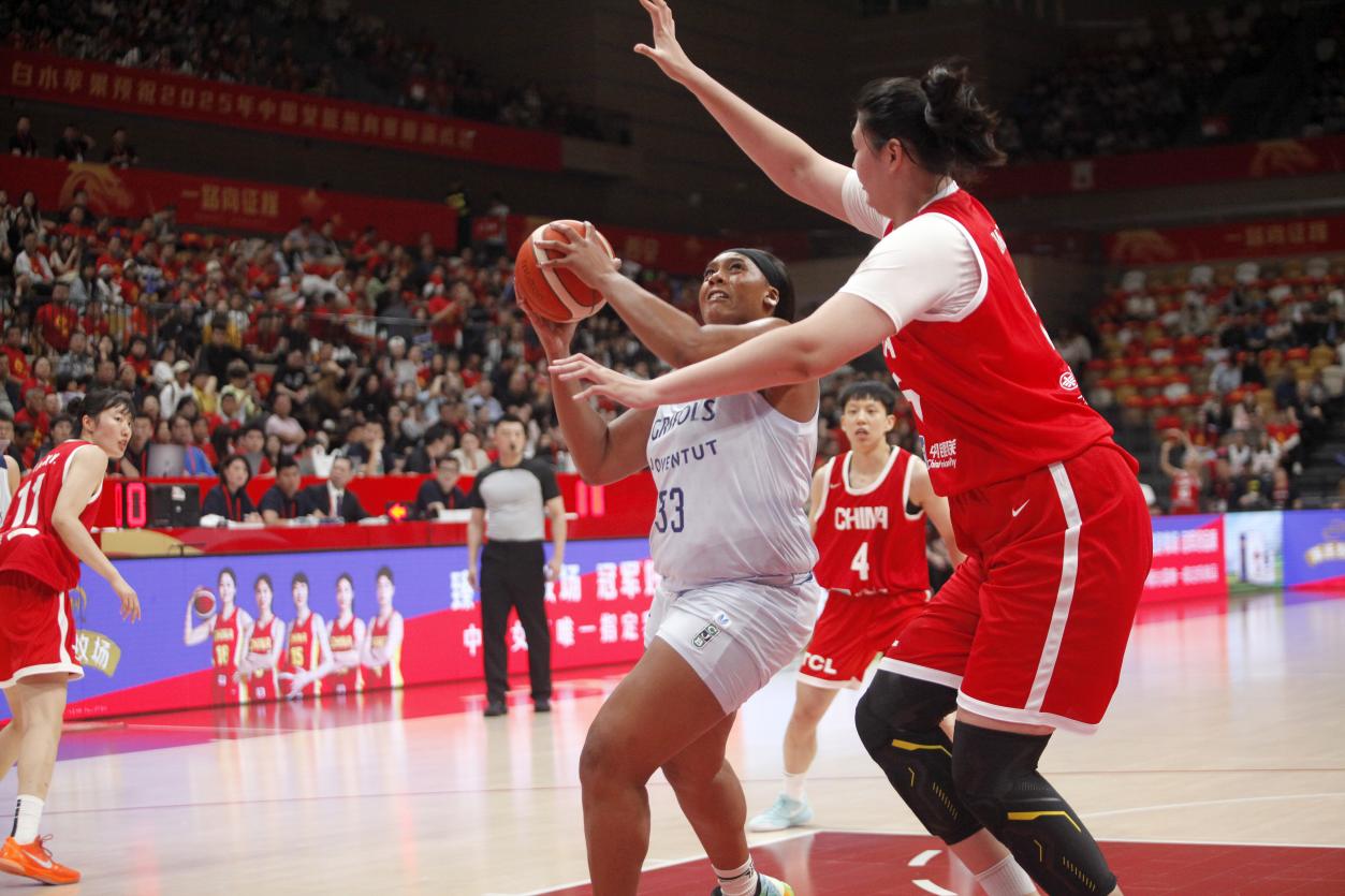 此役,中国女篮派出韩旭、张茹、罗欣棫、杨舒予和李缘组成的首发阵容。首节比赛,尤文图特女篮反客为主,在攻防两端占据主动。中国队首节中段换上张子宇,她与韩旭组成内线“双塔”,但仍被对手限制住了主要得分点。不过,末段中国队换上田媛媛等新人后突然提速,罗欣棫命中压哨球,将比分追至22比24。第二节,中国队以41比38领先结束上半场。