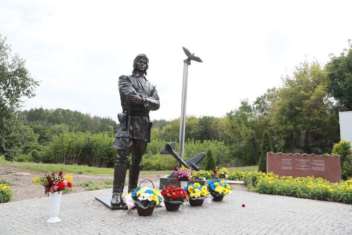 乌克兰第聂伯河沿岸,秋日的阳光洒在库里申科学校对面的广场上。身着飞行服的苏联空军志愿队重型轰炸机大队少校大队长库里申科的雕塑目视远方,在他身边,一只铜制“苏联雄鹰”展翅翱翔。