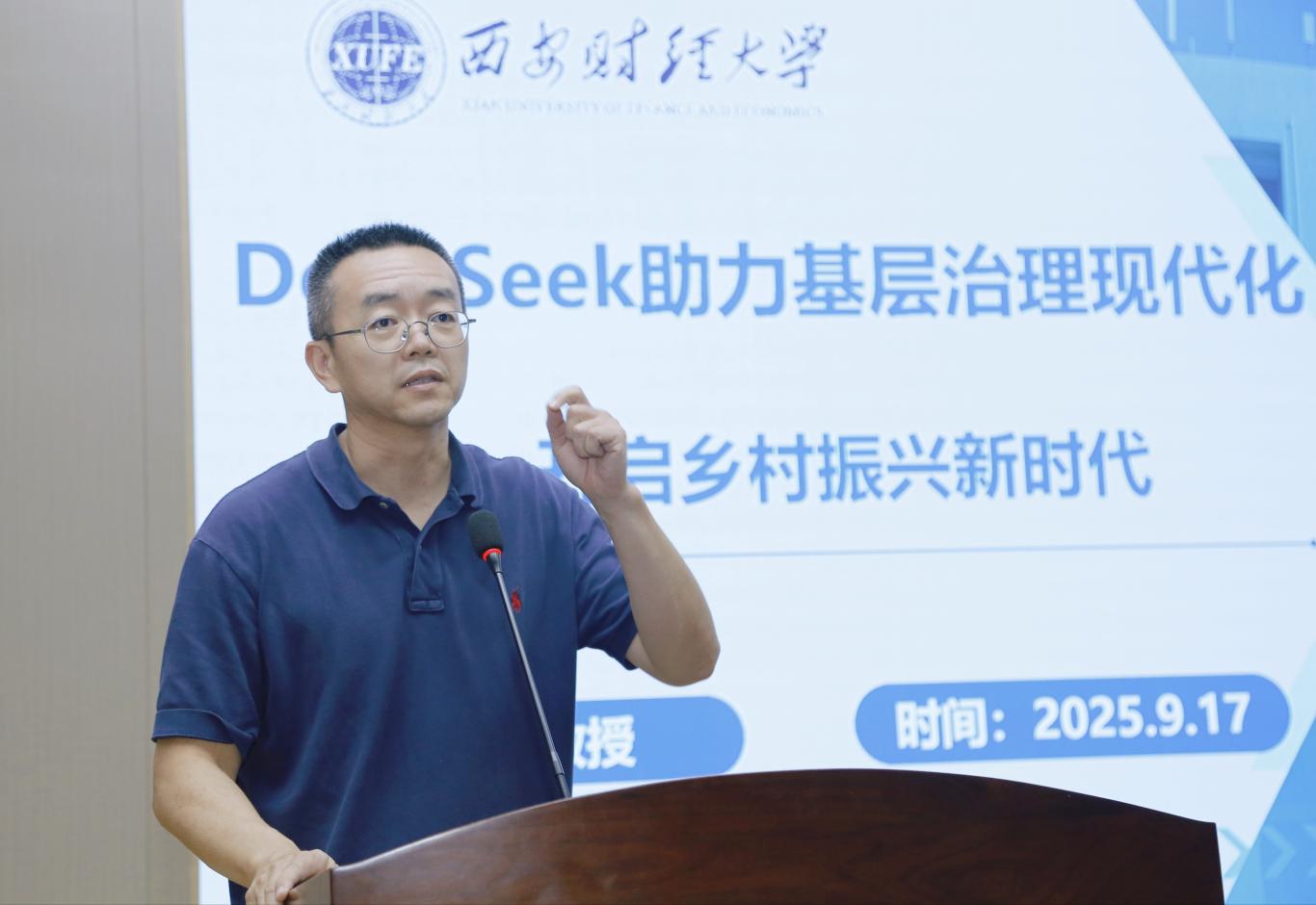 西安石油大学程国建教授率先开讲,他以“AIGC & LLM赋能农业生产与精准种植”为题,生动展示了大模型如何在作物病虫害识别、生长环境调控等领域实现突破性进展,让传统农业焕发智慧生机;西安财经大学王刚教授紧扣时代脉搏,作“DeepSeek助力基层治理现代化——开启乡村振兴新时代”专题分享,详解智能算法如何优化政务流程、提升公共服务效能,勾勒出数字乡村建设的美好蓝图;陕西学前师范学院张秀副教授聚焦实操层面,通过“基于DeepSeek的乡村治理数智化创新与实践”案例解析,展现了数据要素在基层网格管理中的赋能效应;陕西学前师范学院邓志龙教授则以“科技赋能,智领未界——人工智能与大数据技术驱动乡村新跃升”为题,系统梳理了智能技术在农产品溯源、电商助农等场景的创新实践。