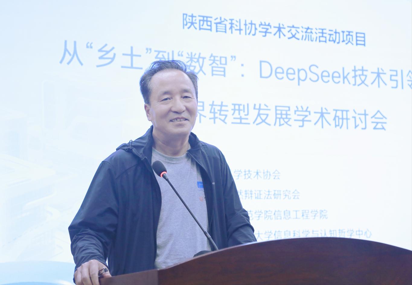 阳光讯(记者 张亚娟 通讯员 罗小娥 文/图)2025年9月17日下午,以“从乡土到数智:DeepSeek技术引领乡村跨界转型发展”为主题的学术研讨会在陕西学前师范学院长安校区成功举办。本次会议由陕西省科学技术协会、陕西省自然辩证法研究会主办,陕西学前师范学院信息工程学院与西安电子科技大学信息科学与认知哲学中心联合承办,汇聚政产学研多方力量,通过线上线下联动形式吸引200余名代表参会,共同探索人工智能赋能乡村振兴的创新路径。会议由陕西学前师范学院信息工程学院副院长邓志龙教授主持。