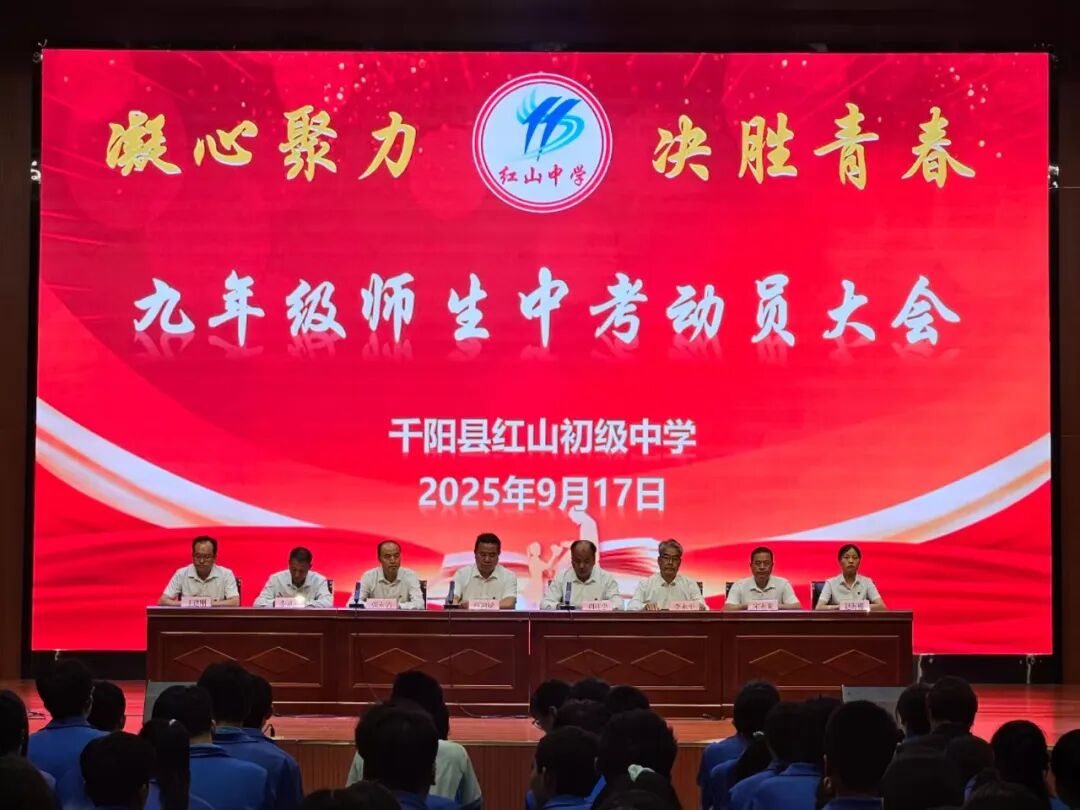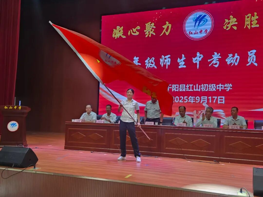 阳光讯(记者 张伟)为统一思想、明确目标,激发九年级师生的拼搏精神,营造决胜中考的浓厚氛围,2025年9月17日下午,红山中学隆重举行九年级师生中考动员大会,吹响了新征程的奋进号角。