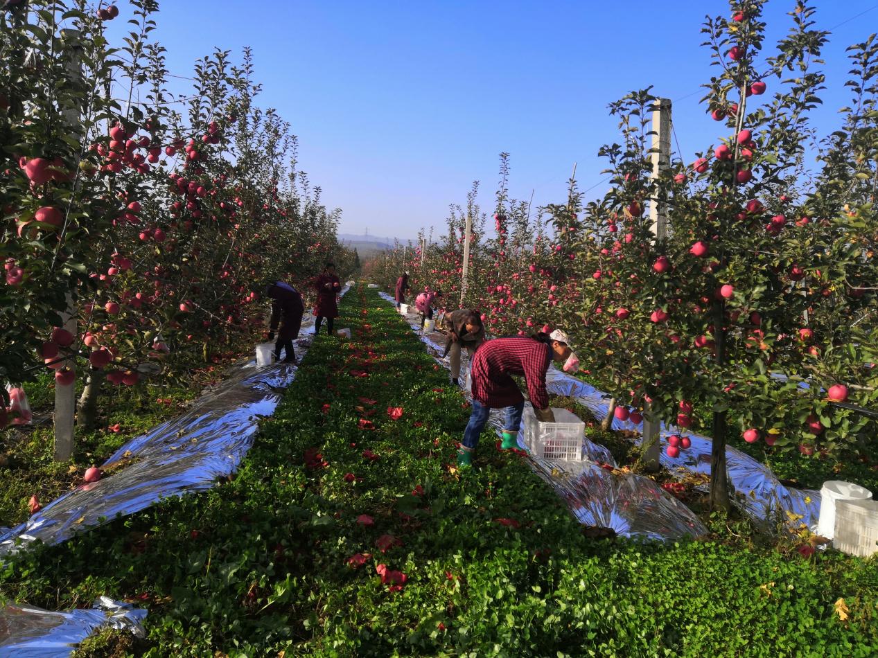 “在家门口就能赚到钱,不用外出打工了,还能给娃娃做上饭哩。”果农胡艳艳手里利索的边装着苹果边说道。