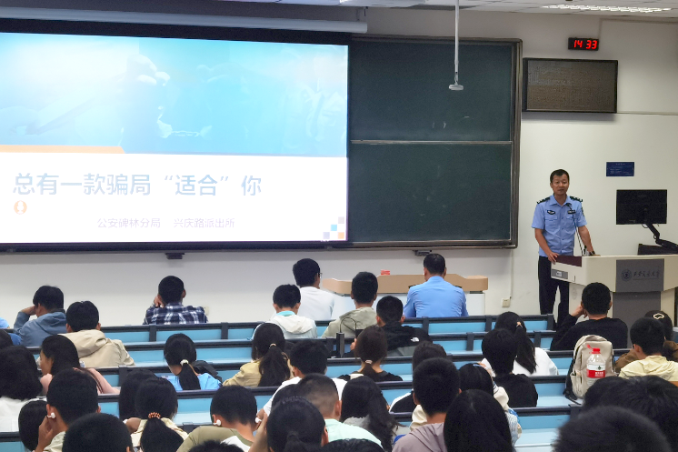 阳光讯 (记者 熊玺 文/图)秋风送爽,开学季如期而至。为进一步筑牢校园反诈“防火墙”,切实守护师生财产安全,西安市公安局碑林分局兴庆路派出所持续推进“警校联动”反诈机制,走进西安交通大学,为百余名大一新生带来一场题为《总有一款骗局“适合”你》的反诈专题讲座。