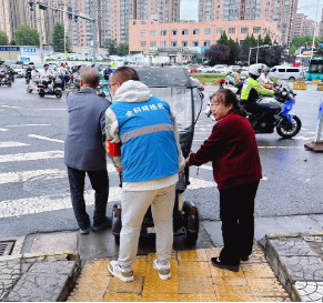 近日,出行高峰时段西部大道上,网格员发现两位老人正吃力地推着一辆无法正常行驶的电动三轮车。见状,网格员立刻加快脚步上前,安抚老人情绪后清晰地告知附近电动车维修店的具体位置。