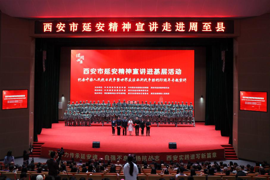 阳光讯(记者 赵生杰 通讯员 周鹏跃)凝心聚力传承延安魂,自强不息弘扬抗战志。9月19日,一场主题鲜明、形式多样的延安精神专题宣讲在西安建筑科技大学华清学院(楼观校区)精彩开展。此次活动以“纪念中国人民抗日战争暨世界反法西斯战争胜利80周年”为主题,由中共西安市委宣传部、中共西安市委理论讲师团、西安市延安精神研究会主办,中共周至县委宣传部、周至县延安精神研究会承办,旨在将延安精神的红色火种播撒到基层一线,用伟大抗战精神凝聚奋进力量。