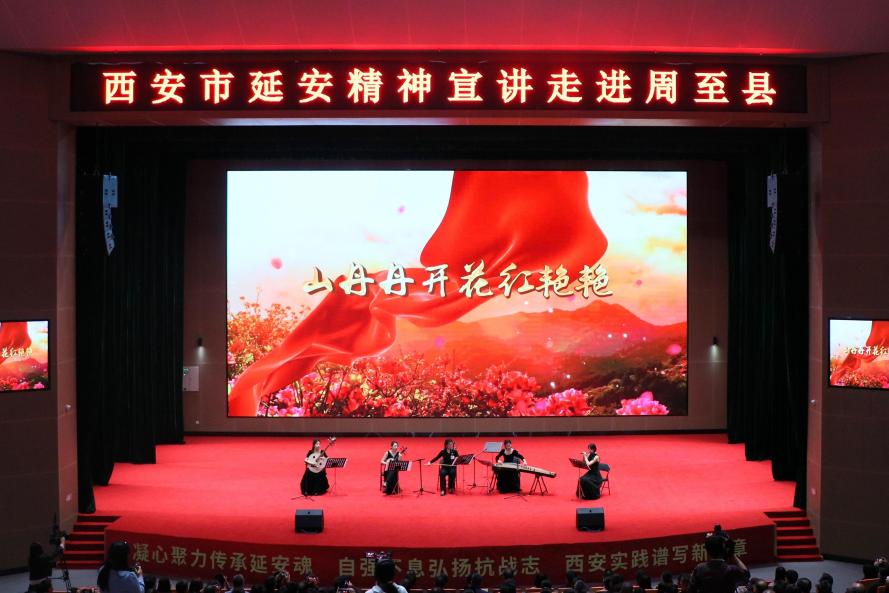 活动现场气氛热烈,来自全县各镇街、各部门的党员干部代表与周至县延安精神研究会理事、思政课教师代表、群众宣讲员,以及西安建筑科技大学华清学院的学生代表等600余人齐聚一堂,共同聆听这场红色宣讲。