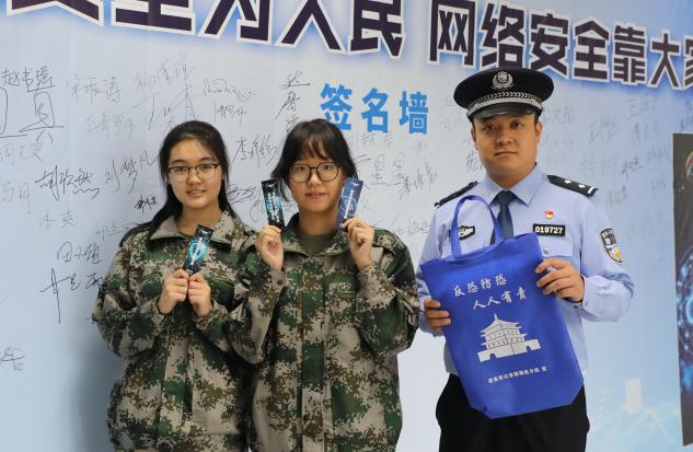 14时许,该校礼堂一侧崭新的“网络安全签名墙”成了师生们的“打卡点”。大家纷纷手持签字笔,郑重签下自己的名字。有的同学一笔一划写下姓名,还有人附上 “护网有我”的话语。“签名不是形式,而是守护网络安全的‘约定’。”人群里,分局五竹派出所社区民警席擘笑着说。