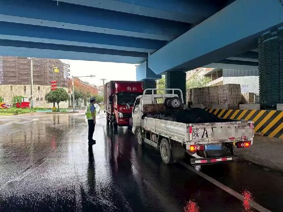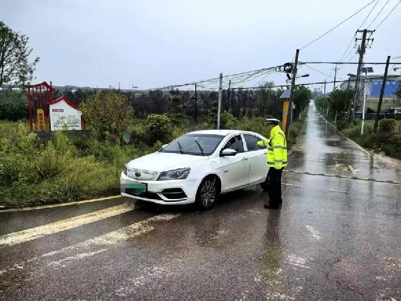 暴雨如注,责任在肩。面对湿滑路面与骤增的交通压力,蓝田公安交警第一时间启动恶劣天气应急预案:执勤民辅警迅速奔赴县城重要路段、桥梁涵洞及易积水区域,在雨水中穿梭指挥,一边提醒过往车辆“减速慢行、保持车距”,一边快速处置车辆熄火、道路拥堵等突发情况。对积水较深、路况不明的路段,他们及时设置警示标志、实施交通管制,耐心引导车辆行人绕行;遇到路面杂物、落石或倒伏树木,便徒手清理,全力打通“安全通道”。