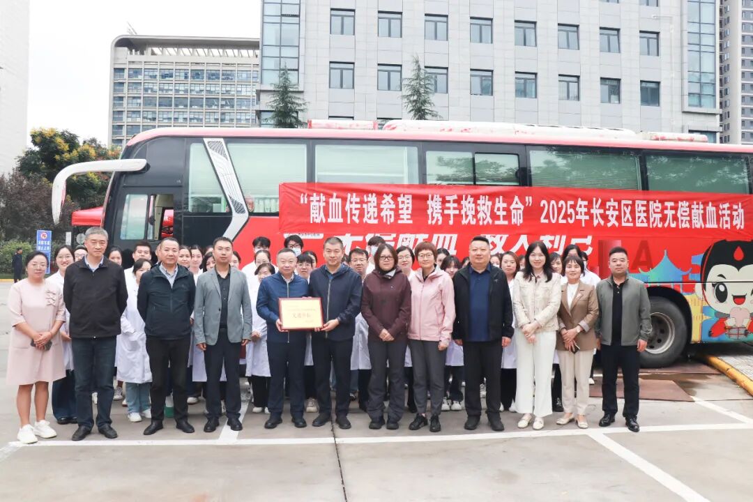 全院医护人员积极响应、主动参与,以实际行动诠释“你的健康,永系我心”的深厚情怀。在简洁而庄重的授牌仪式中,西安市中心血站党委书记杨延、副站长田永刚代表血站,将“2024年度西安市团体献血先进单位”荣誉牌匾授予西安市长安区医院。