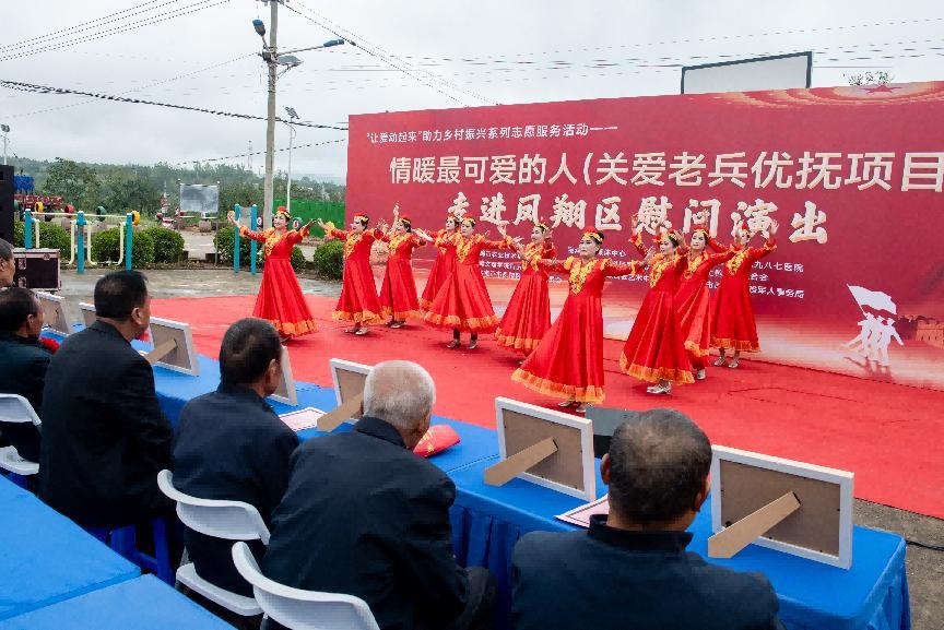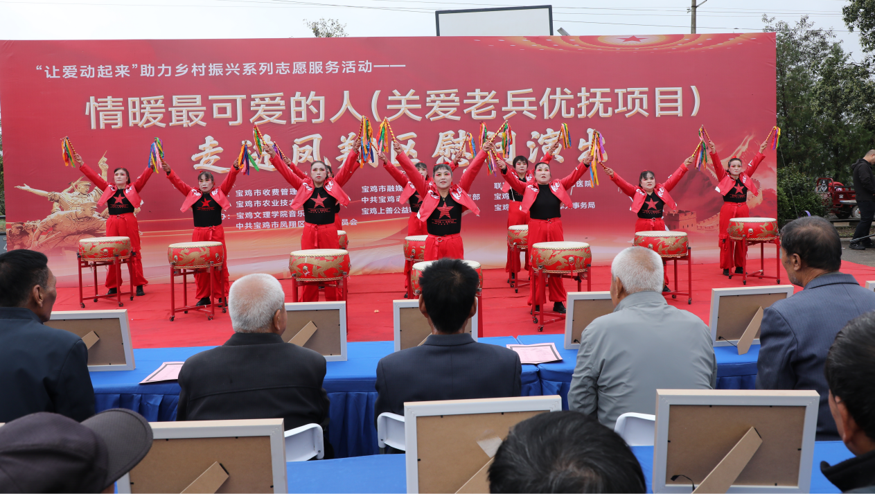 捐赠仪式后,慰问演出在凤翔区乔亚丽鼓舞团带来的《盛世欢歌》中正式开始。震天的鼓点奏响时代强音,翩跹的舞姿跃动盛世华章,迅速点燃全场气氛。