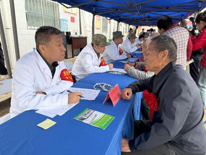演出结束后,联勤保障部队第九八七医院开展了专业细致的义诊活动。医院领导高度重视,由刘副院长带队,抽调消化内科梁君蓉主任、骨科乔林主任、神经内科薛海龙主任、心血管内科杨瑞金主任,以及内分泌科、呼吸内科、健康医学科等多科室骨干组成义诊团队。团队携心电图机、超声设备等专业仪器,为退役军人和村民提供免费心电图、彩超、血压、血糖等基础检查,为疾病早预防、早治疗提供科学依据。义诊过程中,专家耐心询问病史、仔细检查身体,针对个体情况提供专业诊断与健康建议。对患有慢性病的老兵,医生还详细指导日常护理与康复方法,助力他们提升健康管理能力。本次活动累计义诊100余人次,其中退役老兵28人次,发放药品120余盒,切实为老兵和村民带来温暖与健康。