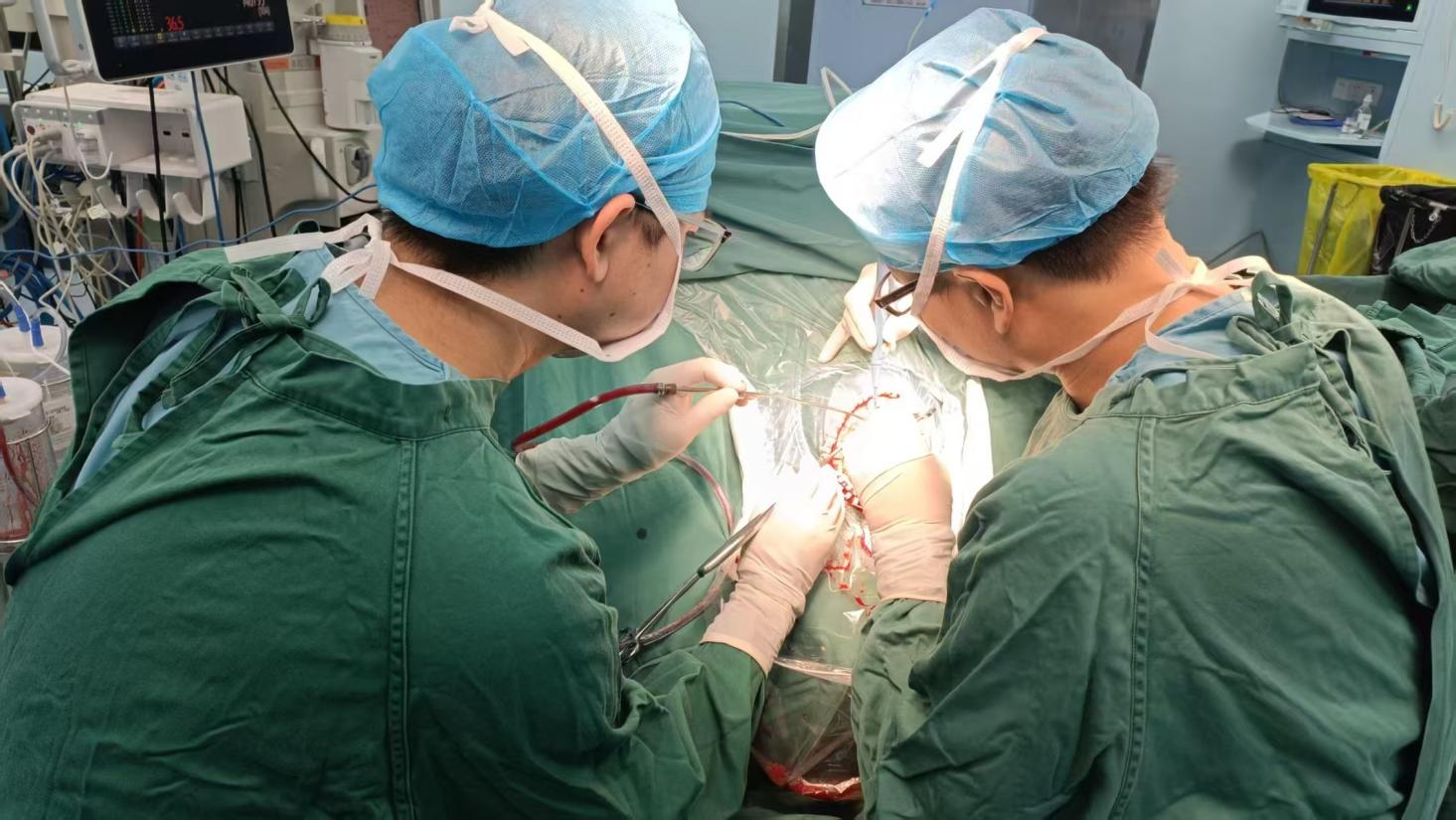 无影灯下,神经外科主任苏永永和乔卫军、杜晓亮医师密切配合,有条不紊地实施切开、止血、清除血肿等一系列手术操作,器械护士有序递上铣刀、止血钳、马蹄剪等,巡回护士严密查看着输液速度,麻醉医师密切观察着心律、血压、血氧饱和度等数据指标。