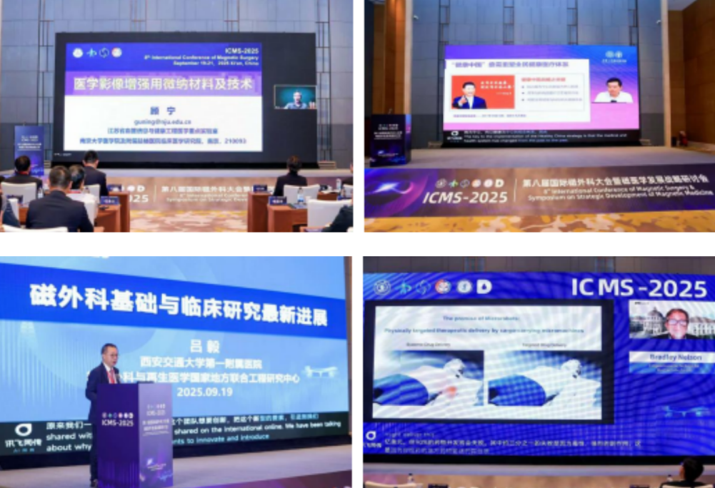 本届大会内容精彩纷呈。中国科学院顾宁院士、中国工程院院董家鸿士,吕毅教授,瑞士苏黎世联邦理工学院Bradley Nelson教授等来自中国、美国、加拿大、韩国、捷克等十余个国家和地区的数十位专家学者,通过线上与线下结合的方式,呈现了多场高水平的专题报告。报告内容紧密围绕临床需求与学科前沿,深入探讨了从功能微纳材料、超高场磁共振成像等基础科学,到磁锚定牵引、磁力吻合等成熟临床应用,再到磁驱动微纳机器人、磁性软体机器人、医学人工智能等颠覆性未来科技的完整创新链条。这一系列精彩报告,为与会者奉上了一场贯通基础研究、临床转化与未来展望的学术盛宴。