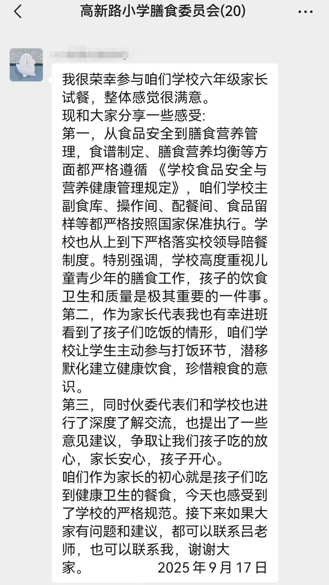 校园餐食的质量不仅关乎健康,也牵动着每一位家长的心。为了让家长深入了解学生在校的膳食情况,增进家校之间的沟通与信任,9月17日中午,该校特邀膳食委员会家长代表走进校园,走进班里,随孩子们一同就餐,零距离感受学校的就餐环境和规则,品尝真实的菜品。