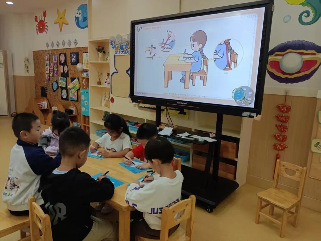 教师教导幼儿正确坐姿,以及正确看书的环境。正确的坐姿是“一尺一拳一寸”,即两眼和书本保持一尺,胸部与书桌保持一拳距离,握笔的指头离笔头一寸。