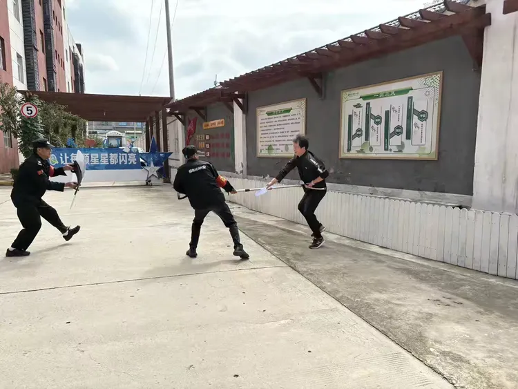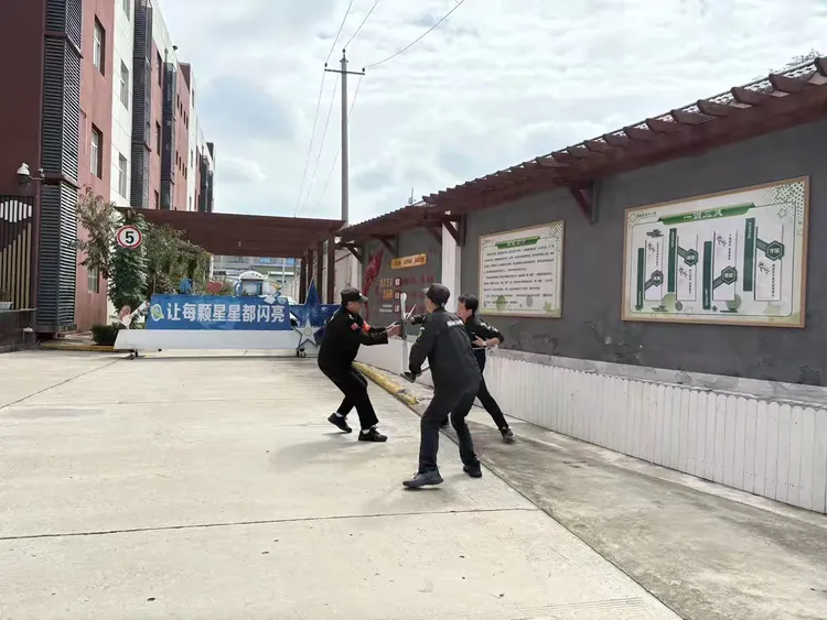 与此同时,应急小分队快速集结,手持防暴器械与安保人员协同作战,运用所学战术与“歹徒”对峙、周旋,最终成功将其制服。