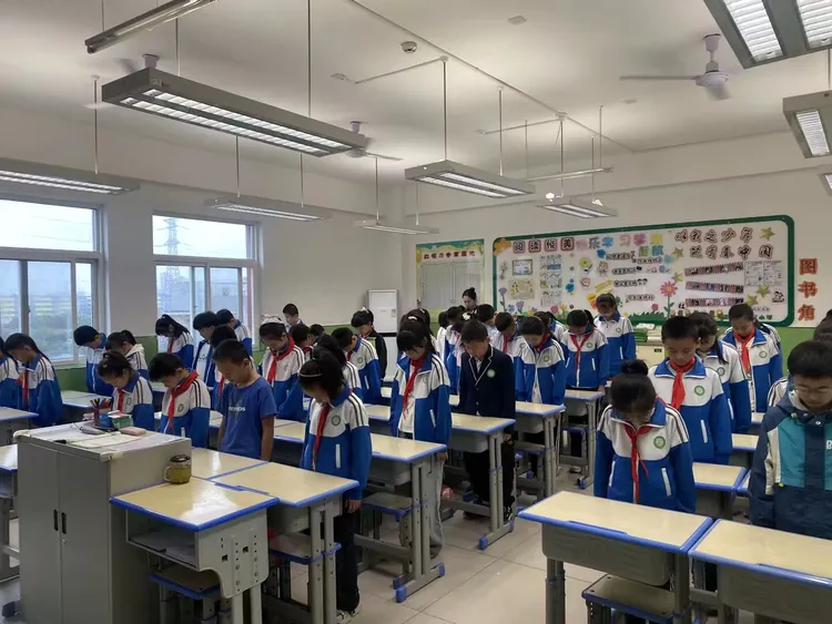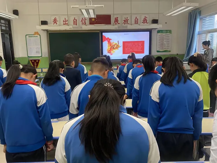 全体队员静默肃立、鞠躬默哀,向为国家和民族牺牲的革命先烈表达深切追思与崇高敬意。