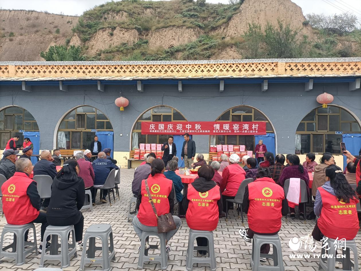阳光讯(高乐乐 记者 高小雨)为弘扬中华民族尊老敬老的传统美德,践行社会主义核心价值观,在国庆节和中秋节来临之际,佳县新时代文明实践中心联合榆林市谢老大制衣有限公司、葭州一点爱公益协会走进王家贬镇窑湾村,为辖区留守老人送去温暖和关怀,让他们感受到社会的关怀和节日的喜庆。