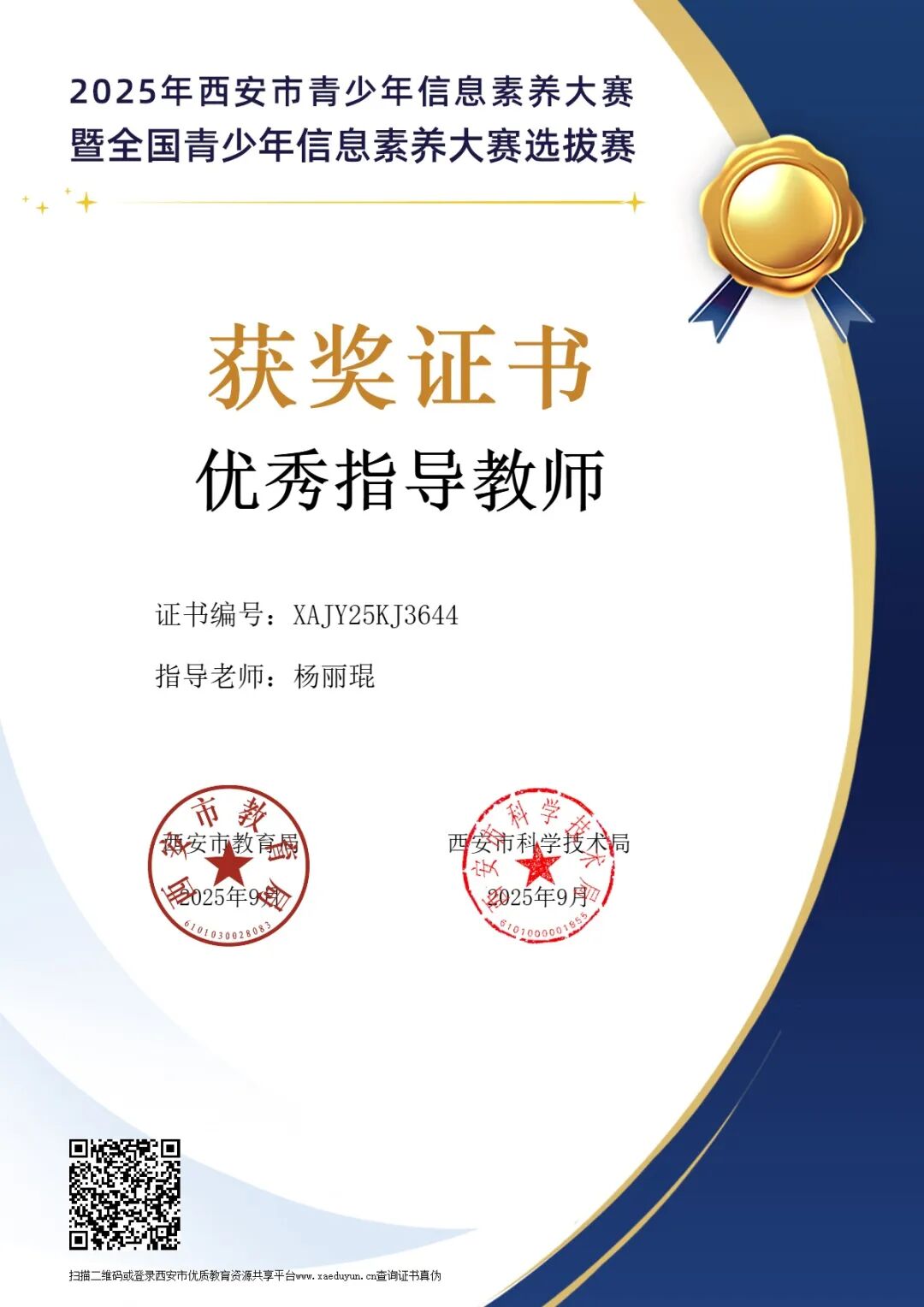 这份荣誉的背后,离不开老师们的辛勤指导与默默奉献。杨丽琨、陈小平老师因其卓越的组织与指导能力,被评为“优秀指导教师”!