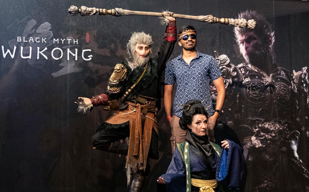 2024年8月,人们在2024年科隆国际游戏展《黑神话:悟空》拍照区拍照。新华社记者张帆 摄