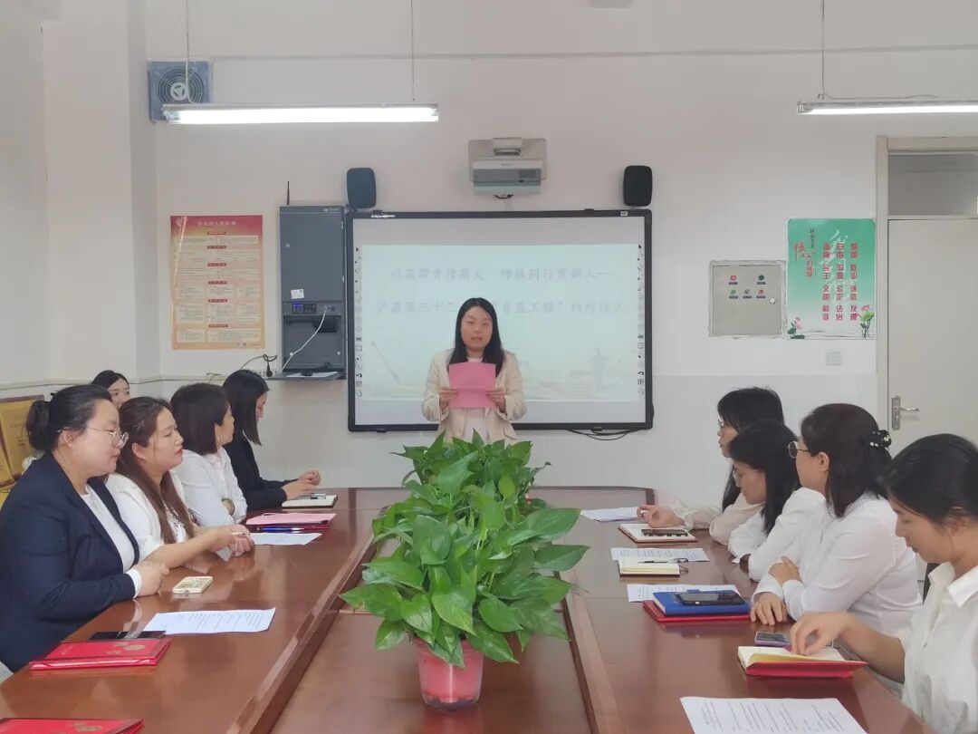 教导处郝会凰主任宣布师徒名单,师父均为区、市级教学能手,经验丰富,希望各位徒弟向各自的师父学习,让自己的业务能力变得更加扎实。