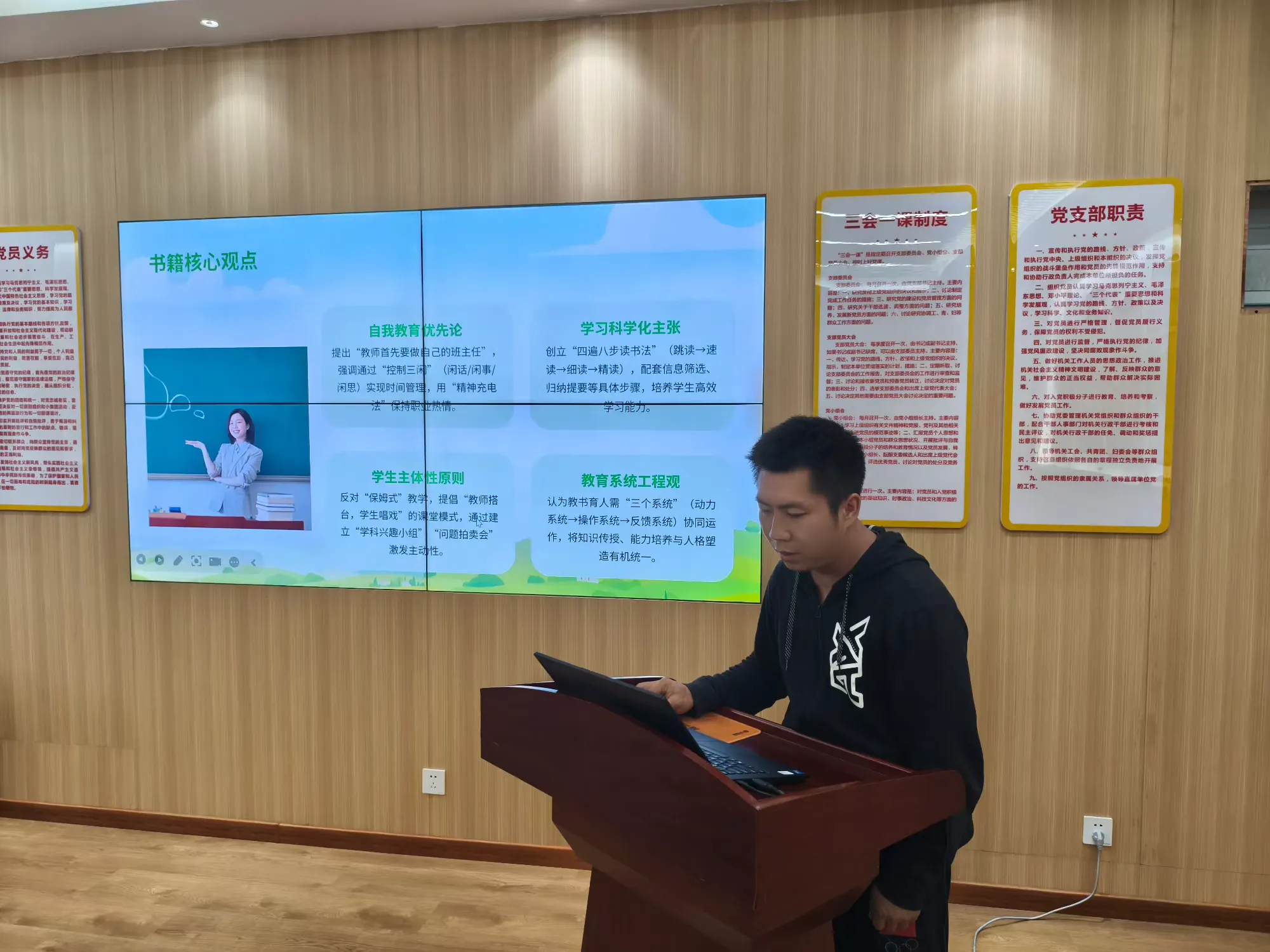 青年教师张威分享了《我这样做老师》一书,本书从教师成长路径、课堂教学革命、班级自治模型、 德育渗透策略四方面进行阐述,提出“教师首先要做自己的班主任”,通过碎片时间管理,用“精神充电法”保持职业热情;反对“保姆式”教学,提倡“教师搭台,学生唱戏”的课堂模式,通过建立“学科兴趣小组”“问题拍卖会”激发学生学习主动性。