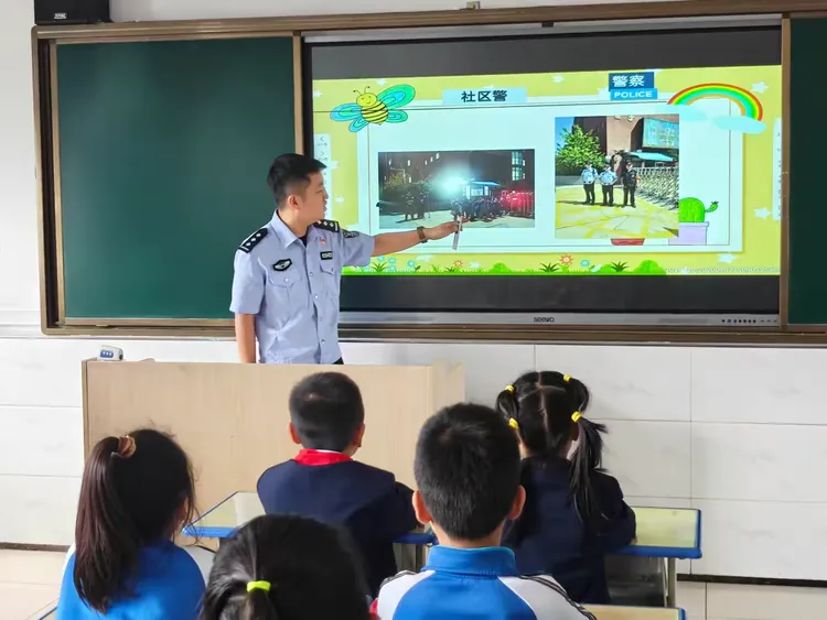 课堂开场,张警官带领孩子们走近警察职业,揭秘警察的日常工作,激发孩子们对这一职业的了解兴趣。