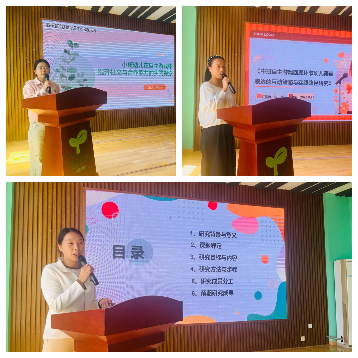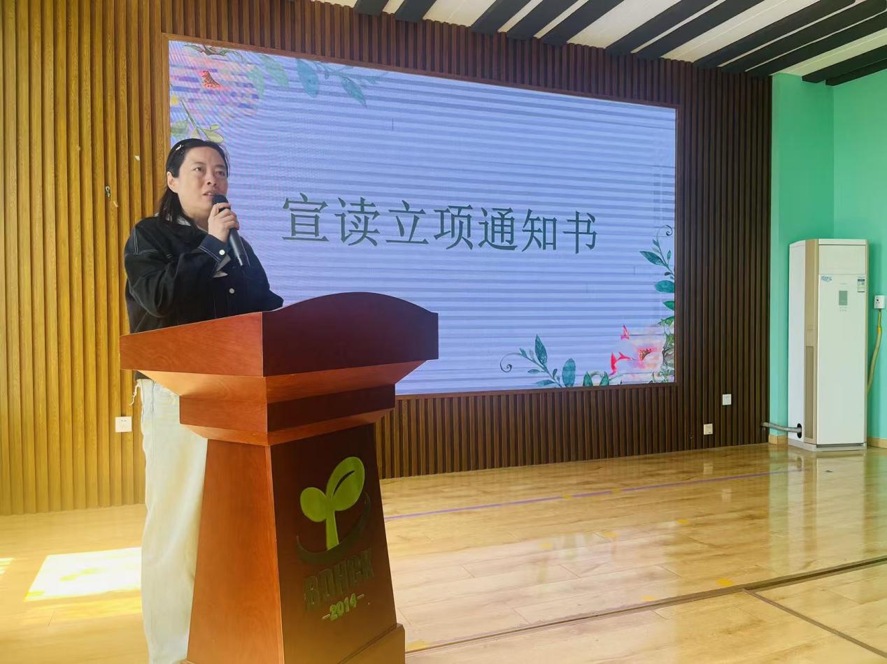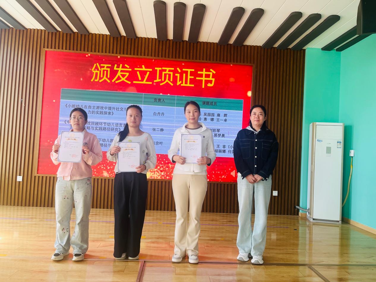 灞桥区红旗街道中心幼儿园副园长吴园园宣读《灞桥区红旗街道中心幼儿园2025年度园本课题立项通知书》并为课题负责人颁发立项证书,希望各位负责人带领成员认真思考、扎实开展、以研促教,不断成长。