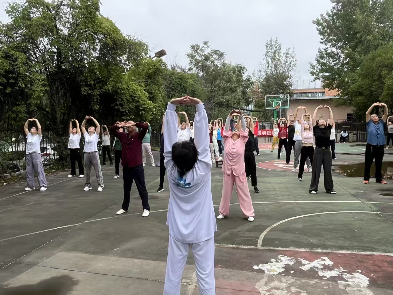 活动现场,30余位居民跟着老师认真学习,一招一式舒展又有力。一位阿姨笑着说:“动作简单易学,跟着练完感觉全身都舒畅了!”本次公益教学将持续8周,每日7:30在小区篮球场集中授课,让健康理念融入居民日常生活。