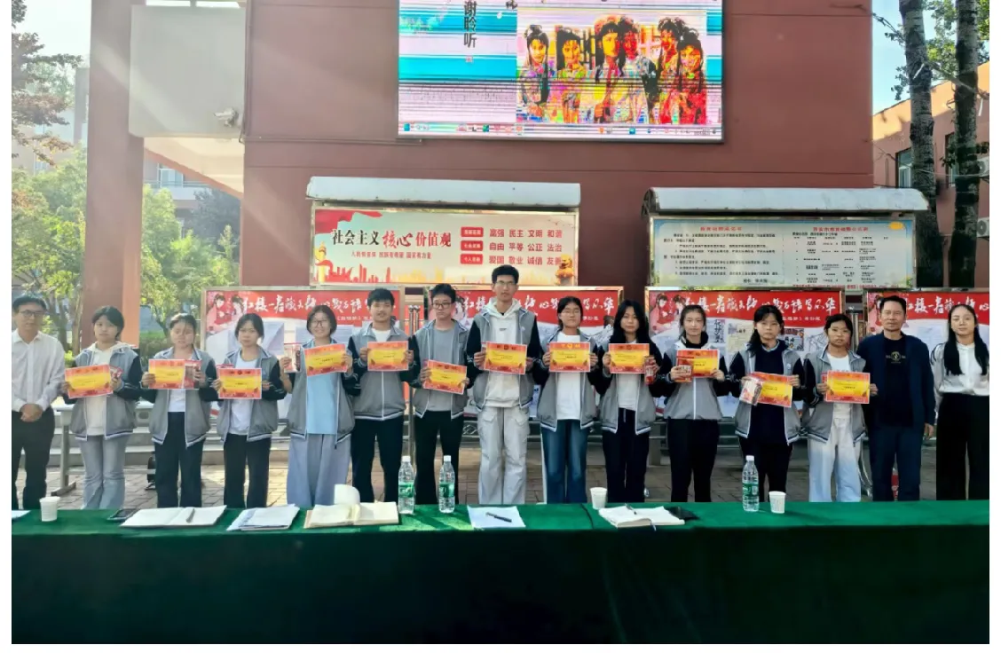 两校校长为在读后感撰写、分享交流等环节表现突出的学生颁发荣誉奖项。获奖学生上台领奖,现场响起热烈掌声,这既是对优秀表现的认可,也激励着更多同学投入经典阅读。