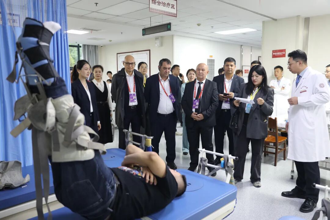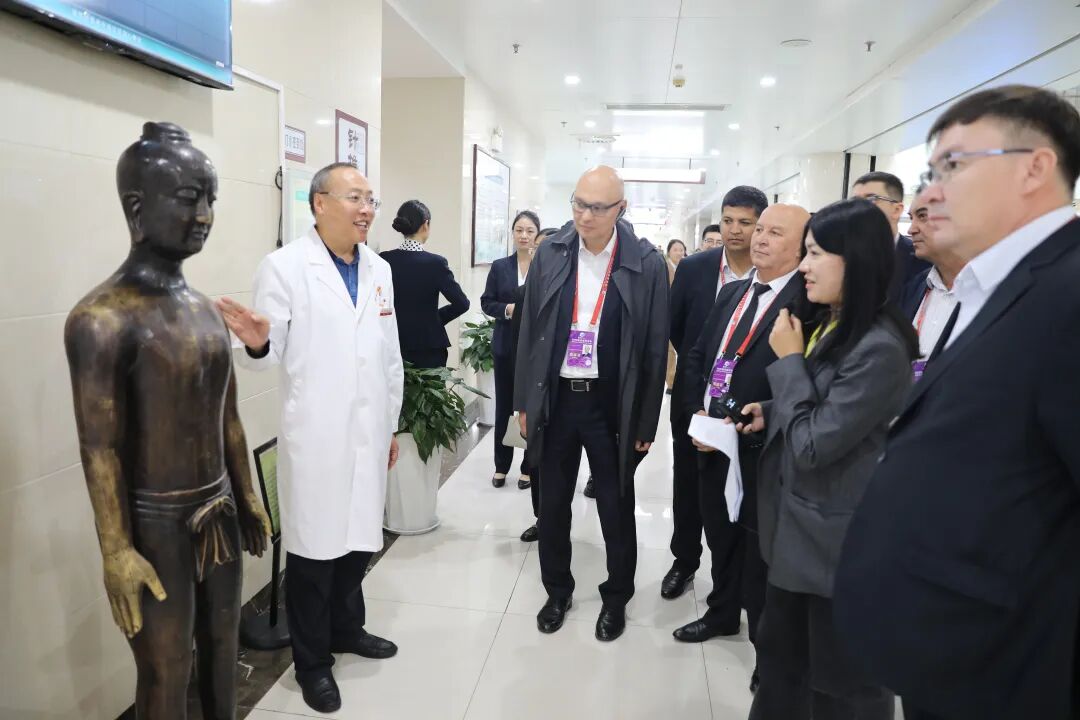 来自哈萨克斯坦、乌兹别克斯坦、吉尔吉斯斯坦、马里等国的卫生官员、高校代表、专家学者,依次参观医院中医文化长廊、名医墙、中药科普展厅、骨伤科中医综合治疗区、针灸推拿康复科门诊等场所,对医院浓厚的中医文化氛围深表赞叹。