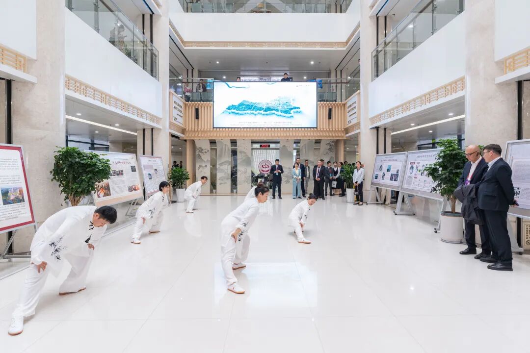 外国嘉宾在门诊大厅观赏了医务人员带来的精彩八段锦表演,现场掌声经久不衰。院领导为嘉宾赠送中药香囊留念。
