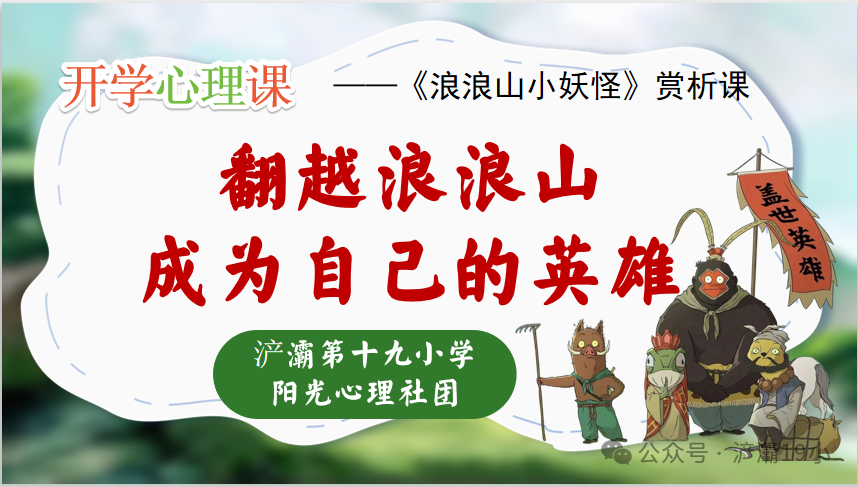 阳光讯(记者 张允铎 通讯员 任姗姗 )新学期伊始,当大家重新回到校园,是否还沉浸在假期里舒适自在的状态中?就像《浪浪山小妖怪》里的小猪妖,习惯了浪浪山的生活,对外面的世界既向往又胆怯。今天,西安市浐灞第十九小学阳光心理小课堂就带大家一起探讨怎样翻越自己的 “走出浪浪山” ,为新学期的成长指引方向。