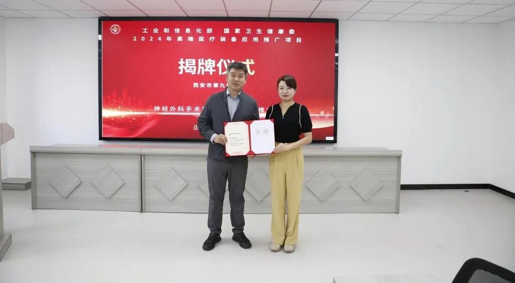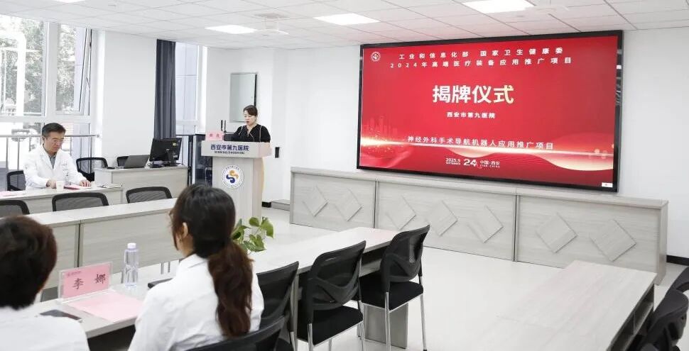 阳光讯(记者 郑亚雷)9 月 24 日,由工业和信息化部、国家卫生健康委员会联合立项批复的“神经外科手术导航机器人应用推广项目”揭牌仪式,在西安市第九医院综合楼会议室隆重举行。这一国家级项目的正式落地,标志着西安市第九医院神经外科神经疾病诊疗领域正式迈入“机器人智能导航”的精准医疗新时代,是响应“健康中国”战略、推动高端医疗装备临床应用与普惠于民的重要里程碑。