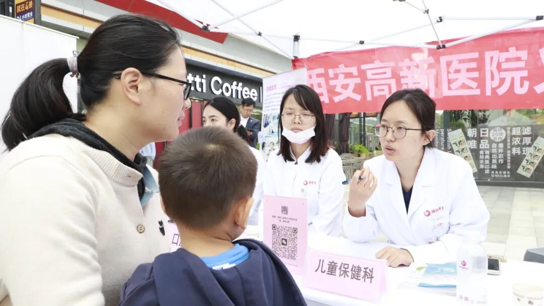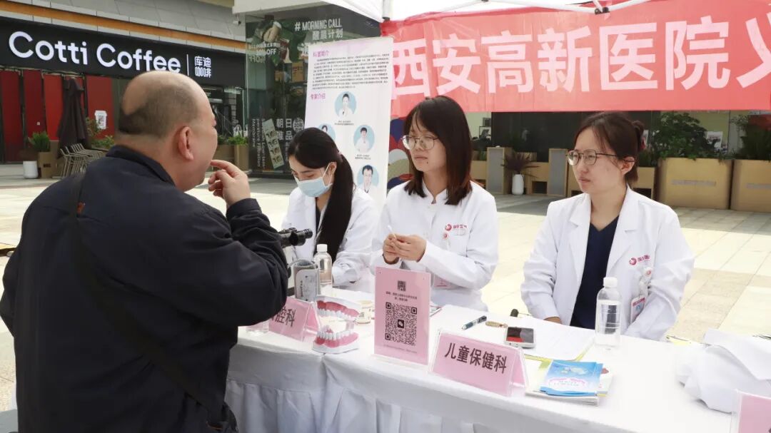 同日,西安高新医院医联体办公室携手中国移动陕西分公司,在西桃园社区举办线上线下大型义诊活动,让广大群众在家门口享受三甲医院的诊疗服务。