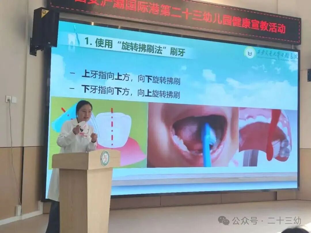 孩子们的牙齿健康越来越受关注,为了增强幼儿爱护牙齿意识,学会科学防蛀,西安浐灞国际港第二十三幼儿园邀请交通大学口腔科医生来园为大班幼儿开展科普宣传及义诊活动,为孩子们的口腔健康筑起第一道防线。