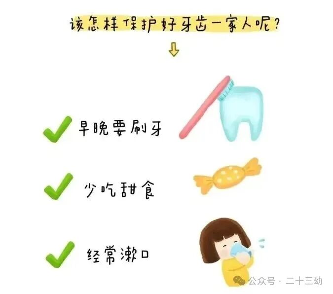 1.教育孩子注意口腔卫生,养成早晚刷牙,饭后漱口的良好习惯。
