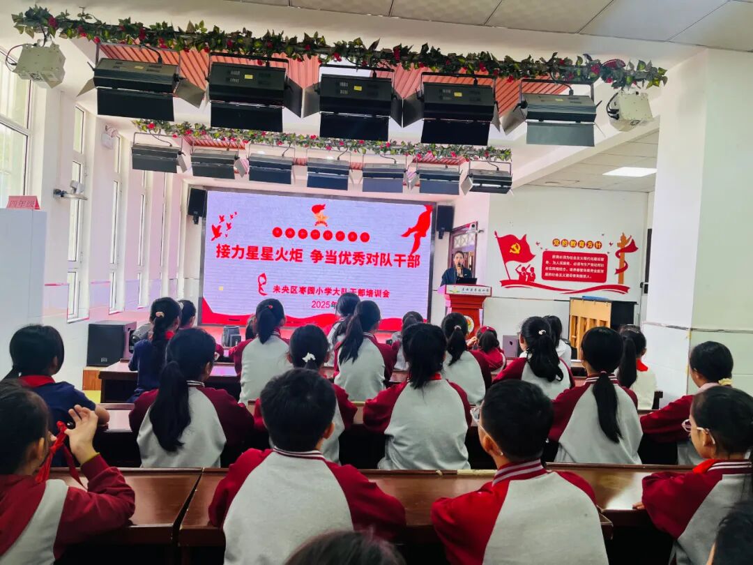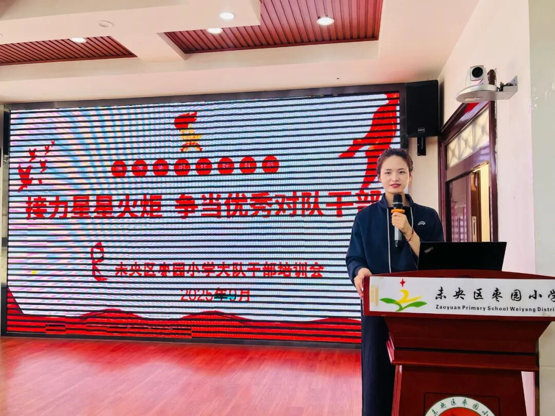 星星火炬,指引队员前进方向;领巾飘飘,展示队员最佳风采;豪情壮志,绽放队员耀眼光芒。为进一步加强学校大队干部队伍建设,充分发挥队干部的示范引领作用,更好地实现学生的自主监督、自我管理,9月24日下午,西安市未央区枣园小学德育处召开了以“接力星星火炬 争当优秀队干部 ”为主题的大队干部培训会。
