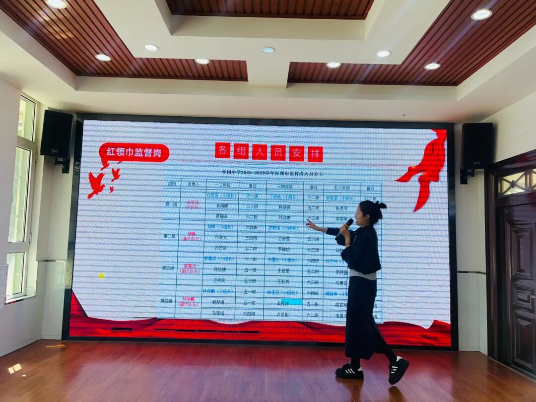 随后,针对学校红领巾监督岗的职责与分工进行了详细培训和细化要求,并介绍了各组值周生组长,让组员之间相互认识和熟悉。