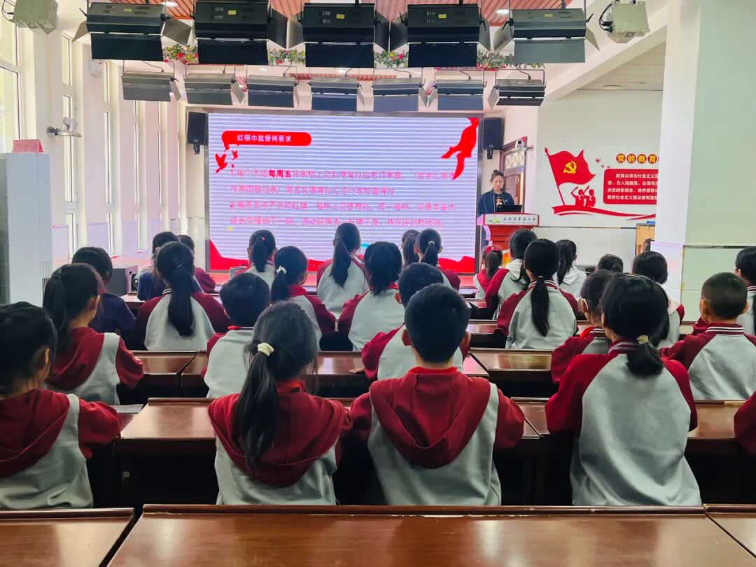 她提醒大队干部要做到“腿勤、眼勤、嘴勤、手勤”,为全体少先队员做好表率;要团结协作、勇于担当、敢于负责,服务好同学、协助好老师,充分发挥少先队干部职能和少先队小主人的精神。大队干部们认真聆听,积极互动,纷纷表示会在今后的工作中更加尽职尽责,做好小助手,起好带头作用。