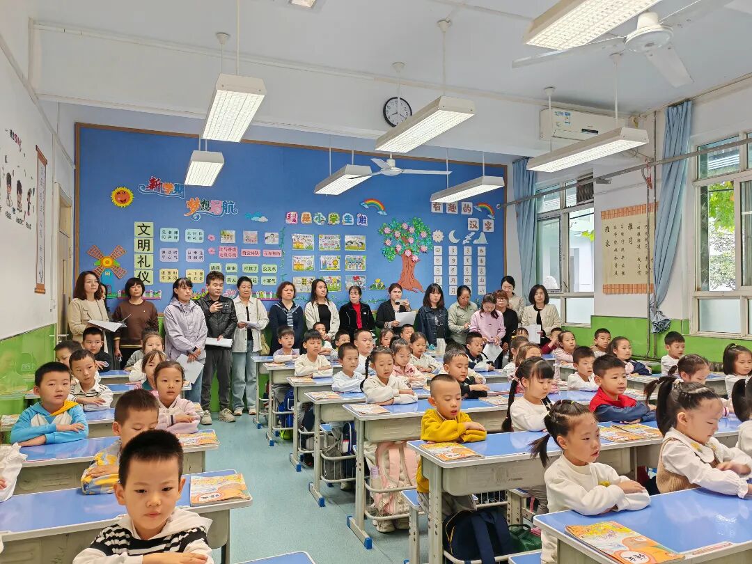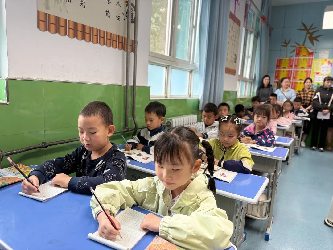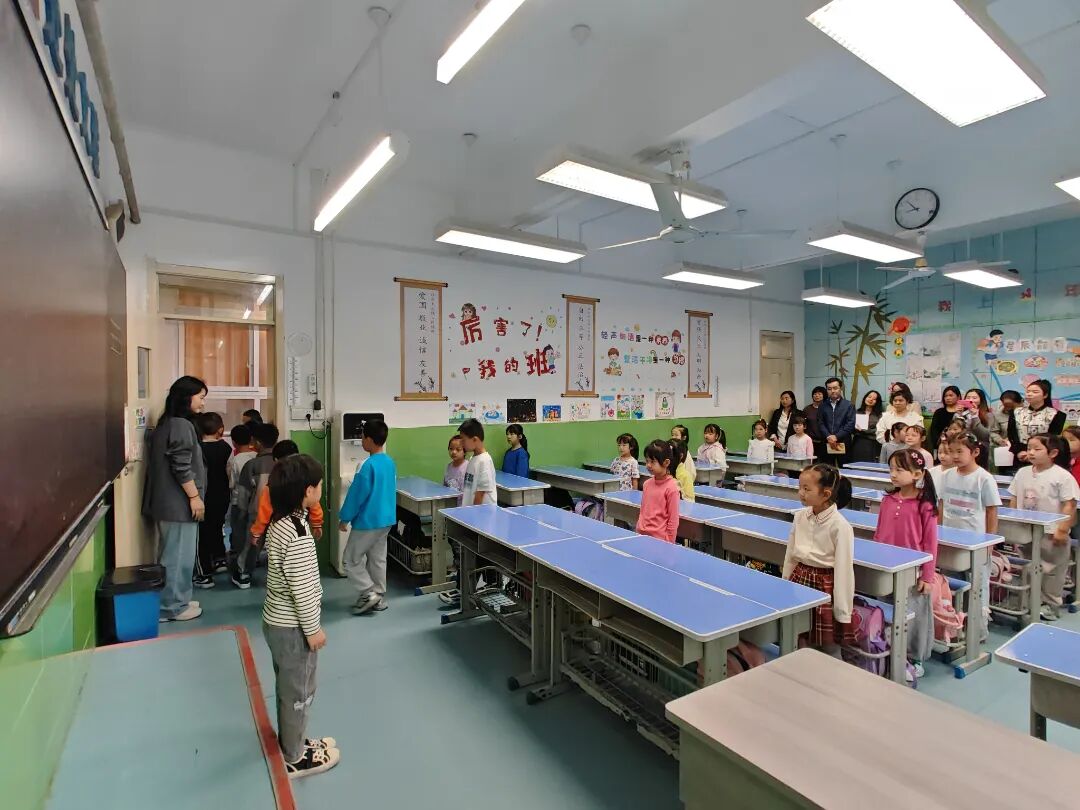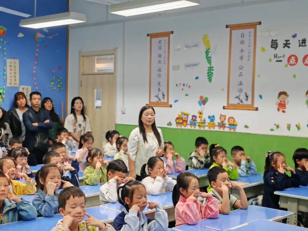 从幼儿园到小学的蜕变,在孩子们身上清晰可见:精神饱满的状态、端正的站姿、响亮的声音、文明的举止,构成了校园里最动人的画面。一年级教室内,悦耳的问候声此起彼伏,课桌摆放得整整齐齐,孩子们保持着 “一寸、一尺、一拳” 的标准写字姿势,师生间的互动欢快又温馨。这一幕幕生动场景,都给到场的家长代表留下了深刻印象。