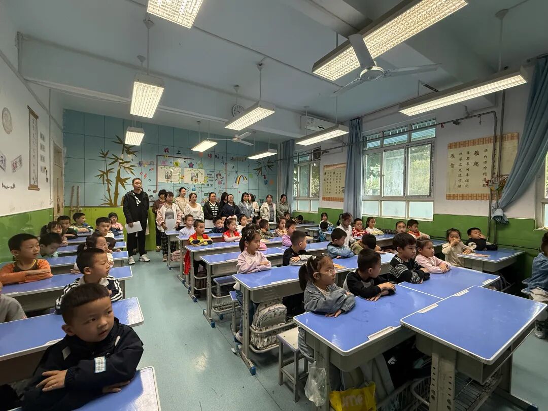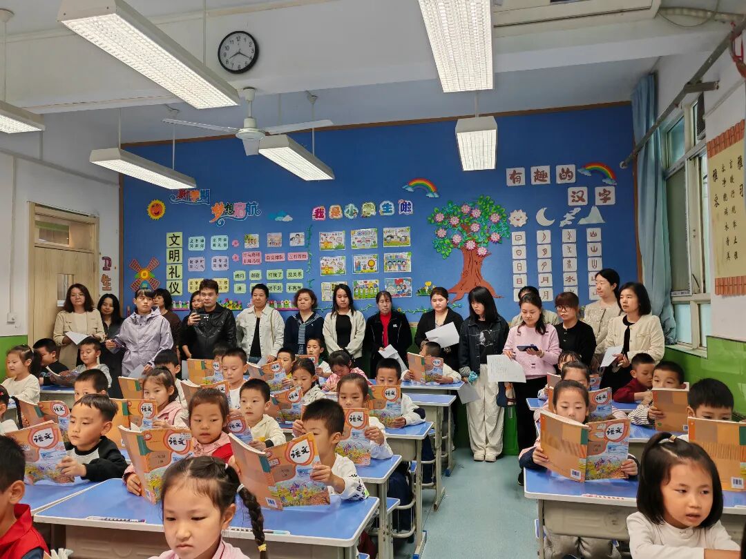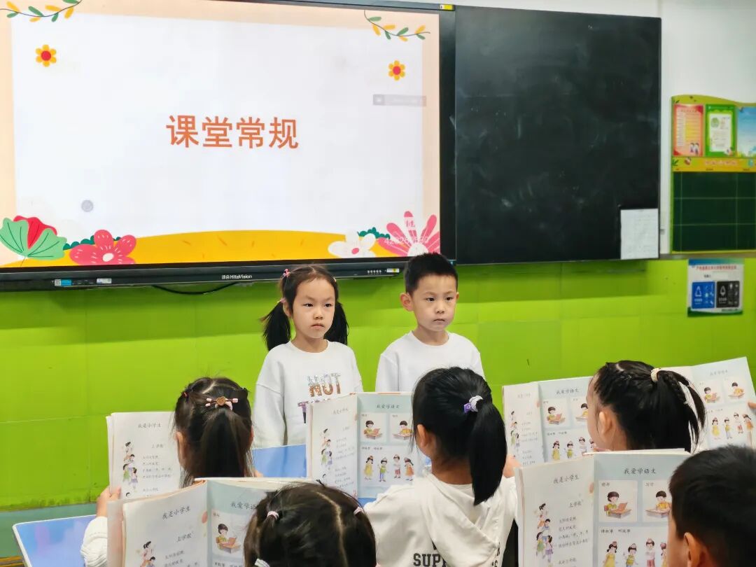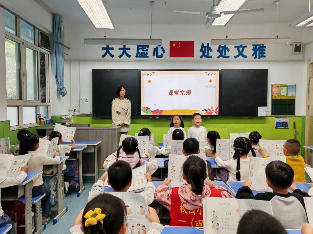 从幼儿园到小学的蜕变,在孩子们身上清晰可见:精神饱满的状态、端正的站姿、响亮的声音、文明的举止,构成了校园里最动人的画面。一年级教室内,悦耳的问候声此起彼伏,课桌摆放得整整齐齐,孩子们保持着 “一寸、一尺、一拳” 的标准写字姿势,师生间的互动欢快又温馨。这一幕幕生动场景,都给到场的家长代表留下了深刻印象。