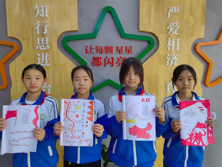 忆峥嵘岁月,怀感恩之心,学先烈精神。学生根据课文《七律·长征》,绘制长征路线图,重温革命先烈激情奋斗的岁月,感受先辈身上英勇奋斗的精神,从而激发自身的斗志,积极学习长征文化、长征精神。