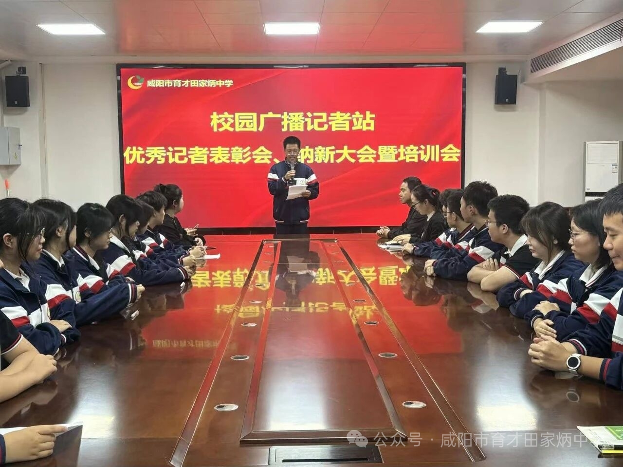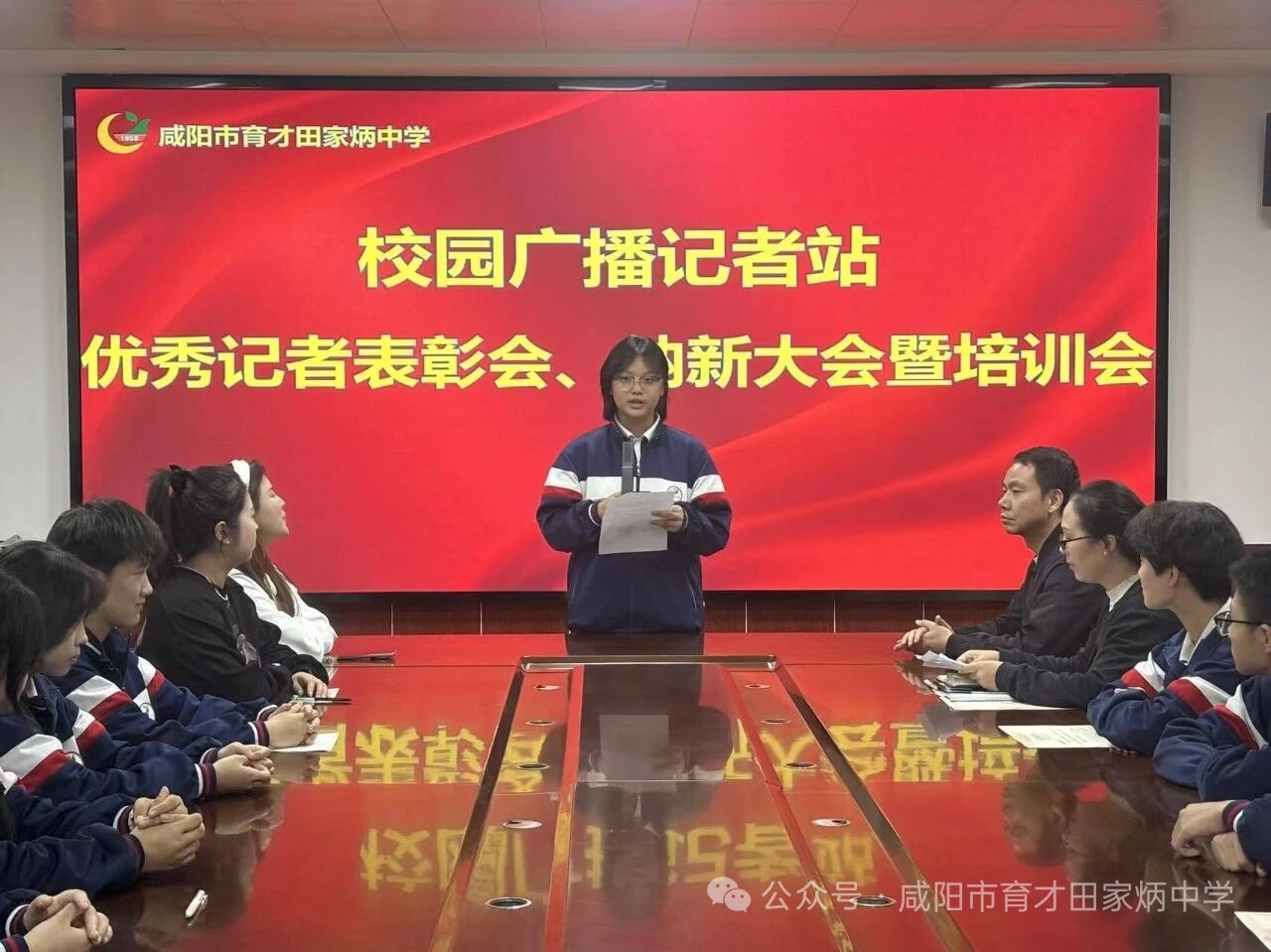 金秋时节,校园广播记者站于2025年9月25日下午在学校二楼会议室隆重举办优秀记者表彰会、纳新大会暨培训会。副校长张宁、宣传交流中心副主任刘娜娜及王玉梅、师娜两位指导教师出席,记者站全体成员与新成员齐聚一堂,为校园宣传凝聚新力量、开启新征程。